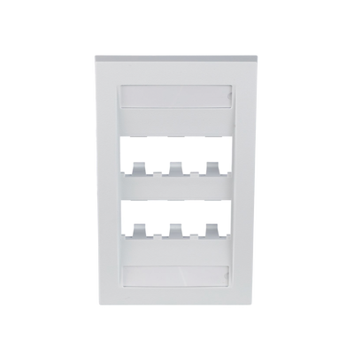 Las placas frontales están disponibles en 1, 2, 4 y 6 puertos de una sola banda y 10 puertos de doble banda con etiqueta y cubierta de etiqueta para una fácil identificación. Cada placa frontal acepta módulos Mini-Com® para UTP, STP, fibra óptica y audio/video que se conectan y desconectan. Las placas frontales de la serie ejecutiva tienen un perfil elevado para una apariencia estética.