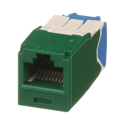 El módulo de conector UTP Categoría 6A/Clase EA de 8 posiciones, se termina en un cable de par trenzado sin blindaje de 4 pares, 22 – 26 AWG d 100 ohms y no requiere el uso de una herramienta de impacto. La tapa de terminación tiene un código de color azul para designar el rendimiento de la Categoría 6A e incluye una etiqueta universal codificada para los esquemas de cableado T568A y T568B. El módulo de conector Mini-Com® TX6A 10Gig UTP se instala como parte del sistema de cableado de cobre TX6A 10Gig UTP para lograr el rendimiento certificado IEEE 10GBASE-T.